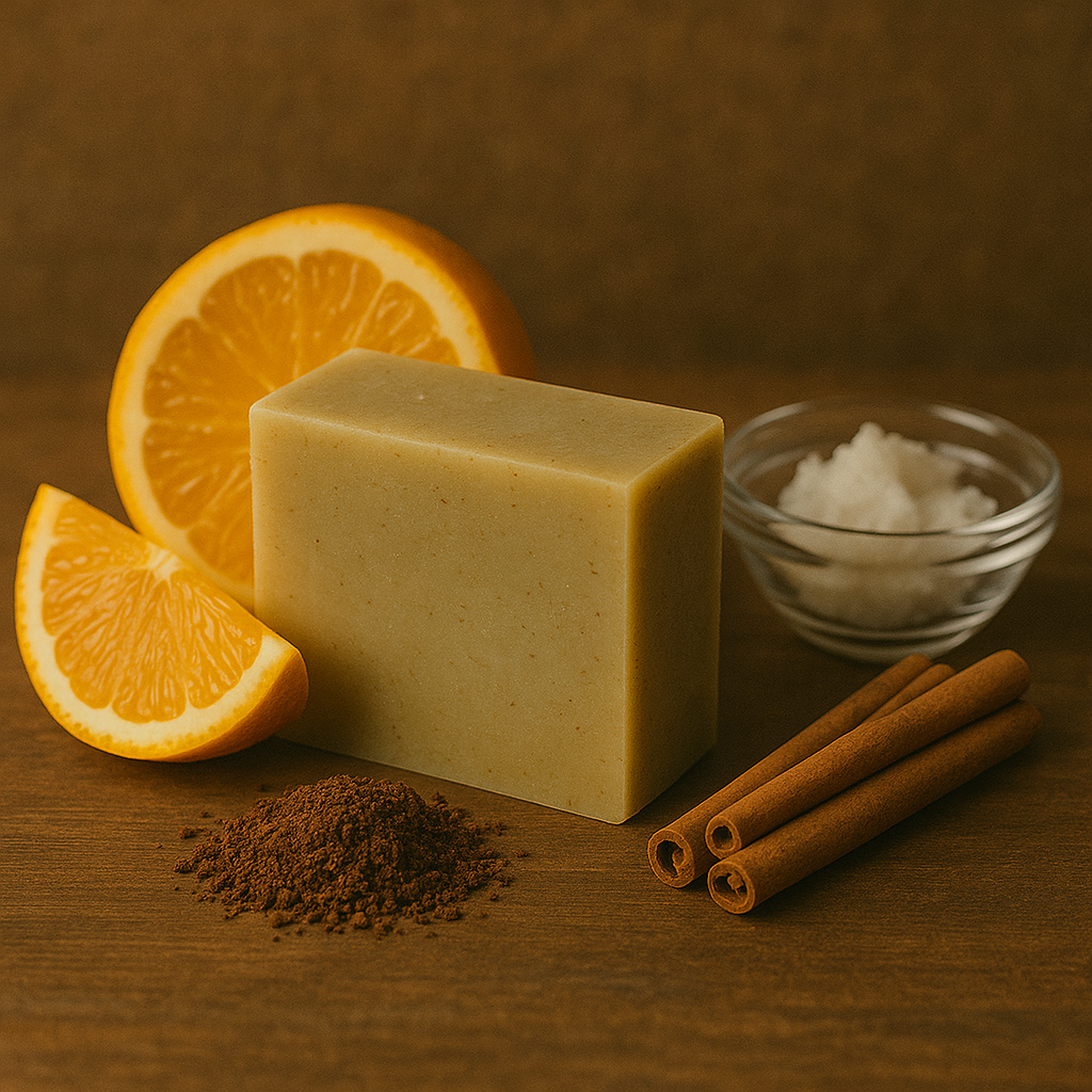 Bright, warm, and timelessly inviting — Spiced Grove blends the zest of sun-ripened orange with the cozy spice of cinnamon. Handcrafted with rich olive oil and natural butters, this bar delivers a creamy, hydrating lather that cleanses gently while leaving behind a soft, comforting scent. A balance of freshness and warmth, Spiced Grove transforms every wash into a moment of calm energy.